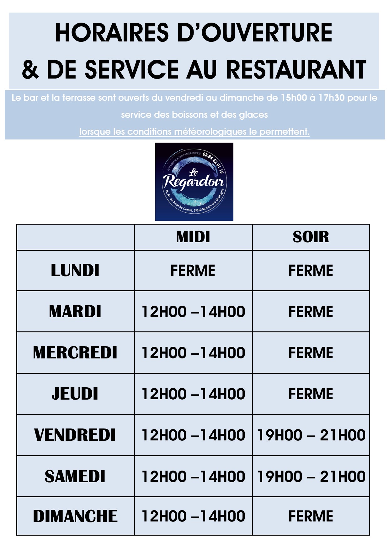 Restaurant & bar panoramique" - infos@leregardoir.com